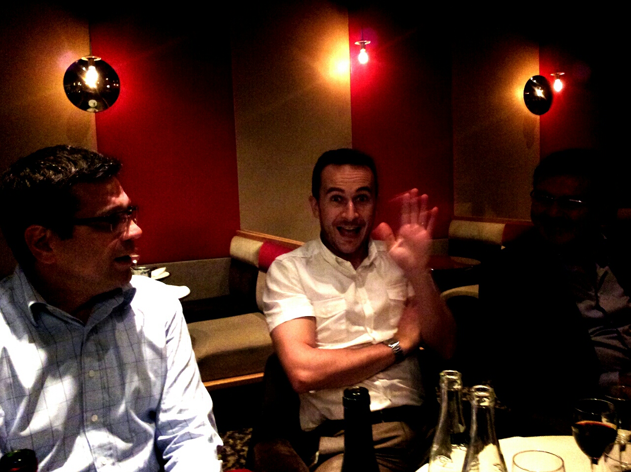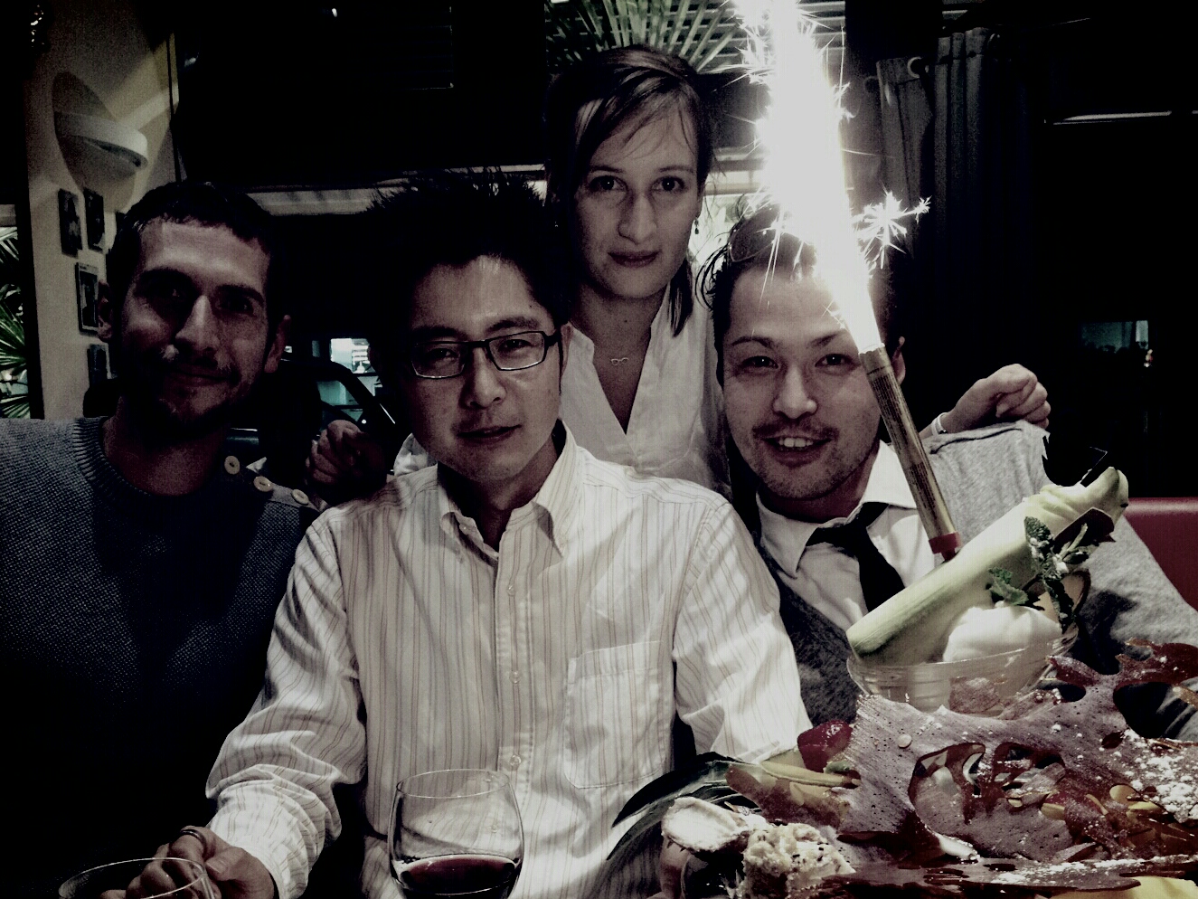 日本風に言うとそんな感じですね。 明日から、世界で二番目に大きい メガネの展示会、Silmo展が 始まります。近年、我フランス支社 では、そこでの出展を控え 別会場のホテルを貸し切って 単独の展示会を行っています。 今夜はその初日。 Silmo展の一日前ですね。 もー!朝から搬入だ、会議だと 慌しい日になりましたが無事完了! 打ち上げに行ってきました。 初日から。(笑) 手前の二人は実は、我チームの 女子二人。 仕事中は二人共おっかない顔をして会話ゼロ。 しかし今夜、初めて楽しそうに 会話をしてる二人を見て なんだかとても安心してしまいました。言葉もわからんお前が上司ヅラするな!と、言われそうですが(笑)。 彼は営業のXavier。 ホントに、気が良くて 程々に出しゃばらないバランスの良い気性を持ったセールス。 草食系って言うんですかね。 但し!よく寝る! 会議中!特に、 KAzのプレゼン中に二回寝てるので、次寝たらゲンコツです。(笑) ちなみに本人にも伝えていますが。。。 明日からは展示会場に直行。 ちと疲れるけど頑張ってきます!