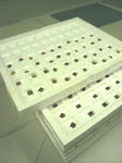 以前、ブログでも紹介したある計画の結果があがってきました。 いろいろ問題があったり、日程がずれ込んでしまっていましたが、 結論をいえば、うまくいった、と言える結果がでました。 企画、開発が受け入れてくれて 製造側が本当に気持ちをいれて作ってくれたおかげです。 その結果がでた時は丁度出張中でしたので、最後のチェックには 立ち会うことが出来なかったのですが、周りでカバーしてくれたので 無事、うまく行きました。 ですが。。。 今日、別件で倉庫に行ってて、いろいろ雑務をこなす中、 もう一度、自分の目で確認してみようと 一枚(ひとつ)あがってきた商品を確認すると、 わかるかわからないかくらいの傷ですが、発覚してしまいました。 一回、その傷で品質管理部門でチェックされて 返品&修理したそうですが、その箇所が治っていなかったそうです。 本当に微々たる傷で、自分自身でも、通すか通さないかの 微妙なラインだったので、数人に相談したところ、 全て返品でもう一回、修理をしてもらうことになりました。 改めて、この会社の 品質管理の意識の高さを思い知らされました。 もともと、まぁいいか、というノリの強い自分なので、 その厳しさ、正確さは、デザイナーとしても勉強になります。 まぁ、デザイナーが物流や品管部門まで行って 全品を検品するチャンスも、あまり無いのですが。。。 今回は自分の責任ですすめていたものなので、 立ち会う機会ができました。 傷は正面(フロント)にあったのですが、その代わり 腕は完璧でした。顔が歪まず写るくらいが基準です、という事を 製造側へのポイント、バロメーターとして考えていましたが。。。 わかりますかね? 腕(メガネの横の棒)のフラット面にきちんと 空が写り込んでるのが?? 今後は、面の基準は 『空が写るか!?』ですね。なんだかカッコいい基準に聞こえます。 この調子でフロントもお願いします! それからそれから。。 天然石が入っていて全ての石が異なるEE22916ですが。。。 4色あるうちで全ての石を4つの傾向に分けて、選別し 量産品へ振り分けています。 今回のサンプルの中の ブラックに一枚だけ、渋ーーーい色の石を見つけました。 ちょっと見えずらいかもしれないのですが。。。 ほとんど、色味が入っておらず、透明の石に黒い模様が浮かんで 全体的に無彩色なイメージです。 『ああ!!!これほしい!!!!!』と思って これだけ引いて自分で買ってしまおうかと思ったのですが、 きっと、日本のどこかのユーザー様もこの色を気に入ってくれて 買ってくださるかもしれない、と思いそのまま出荷の棚に 戻しました。 もし、この石が当たったユーザー様いらしたら、 おめでとうございます!!!・・? 笑