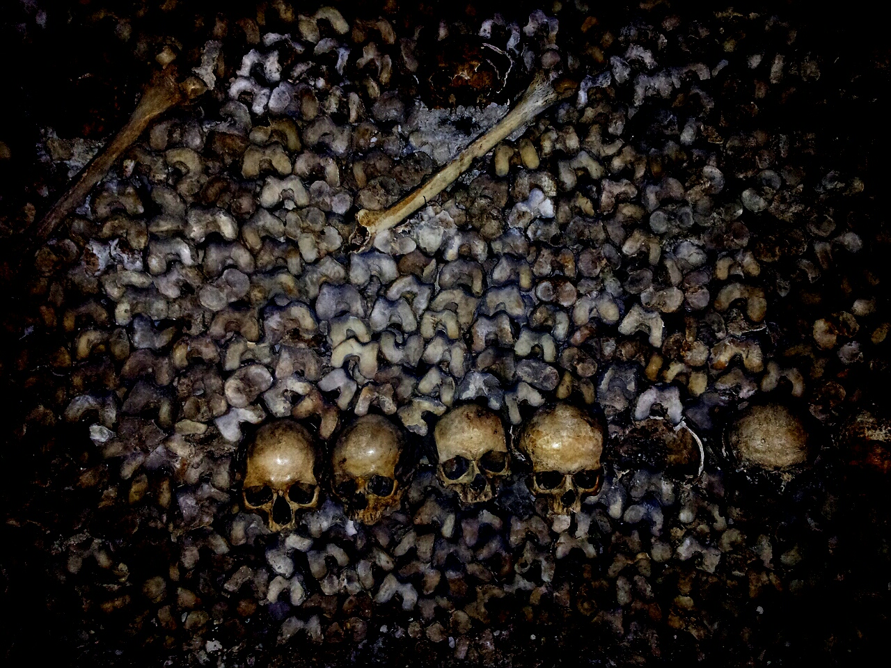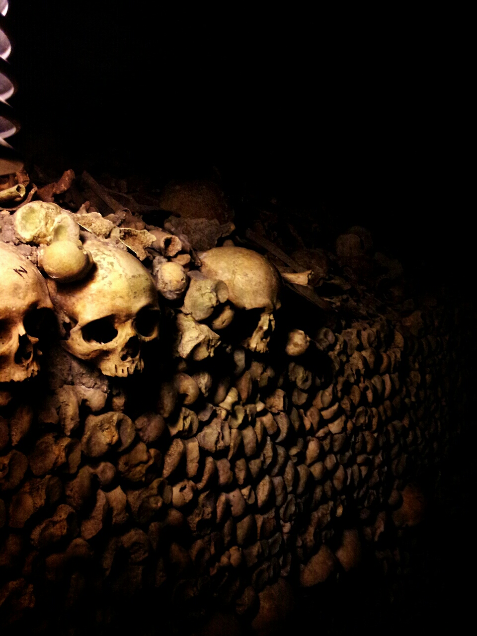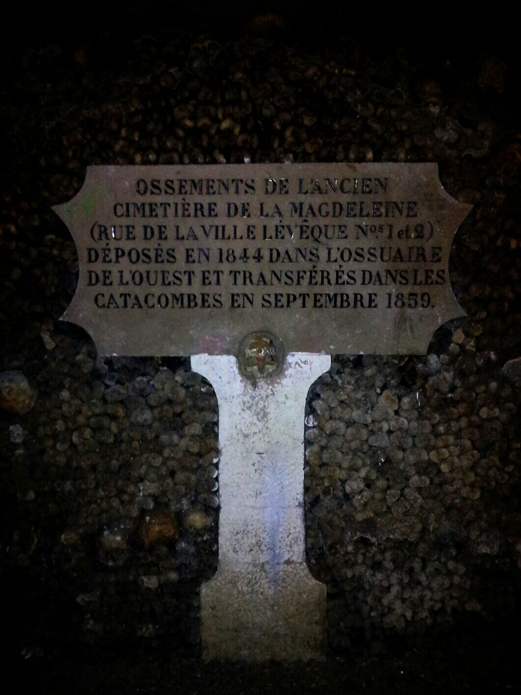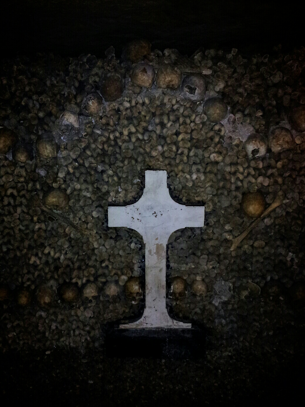 違う行き先のご紹介。 怖いのグロいのが苦手な方は ここでご遠慮を。 以前から気になっていた場所へ 遂に足を踏み入れました。 カタコンブ。 昔、墓地の場所が不足したので そこに安置されていた約600万人分の 遺骨を地下墓地に移したそうな。 その距離、2キロ弱。 駅で言うと次の街までの面積の 全てが遺骨で埋め尽くされている、 と言う事になります。 これまで友人や知り合いがここ、 パリを訪ねてくれましたが、 まぁ、誰も一緒に来るわけが 無いのでその機会を 逃して来ましたがいよいよ到来デス。 入り口です。 なかなか重々しい空気に包まれてます。 中へ入ると直ぐに地下へ続く 螺旋階段が、、、。 これが結構深い。螺旋状の狭い 階段を降りているだけで目が回り そうでしたが、着いたらすぐに ひんやりとした空気に包まれた洞窟。 この距離が意外と長く、1キロ以上 あるそうな。 時々、前後に人がいなくなり 瞬間的に、道、間違ってないよな? と、思いながら、とにかく前進。 すると、突然現れたその入り口。 おびただしい数の人骨。 それがまたキレイに並んでるから 一瞬、普通の壁にも見えちゃう。 この写真、このライティングが 一番キレイに撮れたんじゃ? と思います。 これもなかなか。 この写真は、なんだか感じる。。 キチンと安らかに眠れて いれるように、だな、これは。 これは、いったい どういう亡くなり方をしたのかね。 これもね。 その昔、 今じや考えれない人生の 終焉を迎えた人がたくさんいる、 そんな事を感じました。 今の世の中は、また別の 恐ろしさがありますが。 このカタコンブについて、 モラルや価値観で語っている サイトやブログを見つけたので そういうコメントはあえて 控えます。 自分の素直な感想でいえば、 訴えかける威力はスゴイ。 これが人間か、 と言う、印象でした。 何よりもたくさんの意味を持つ、 何よりもこちらに向かって 肉薄してくる、 モチーフで例えればそんな感じです。 んー、自分の中ではまだ 生きたまま、捉えてるのかも しれません。 どこかに 『一人では行かないでください!』 なんて書いてたけど、 ホントそうかもね。 気持ちを鎮めに行ったけど そういうところじゃないな、 ここは。