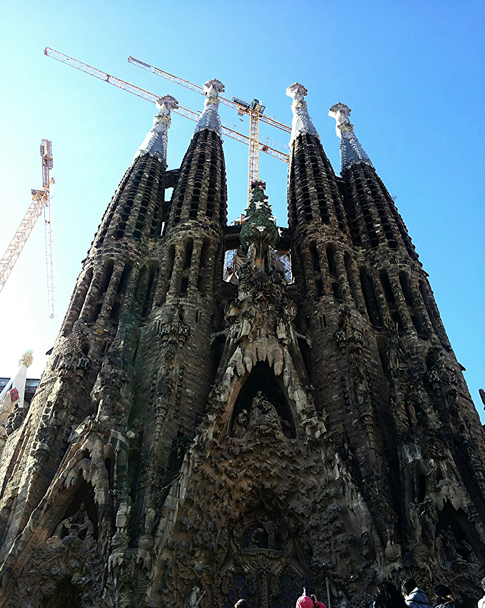 ヨーロッパに数多くある教会の スペインバージョン、くらいの 期待値しか無かった自分に 大きな衝撃を与えました。 泥にまみれた建設途中の教会という イメージを持っていましたが 実際に見るとそれは壮大な建築でした。 日差しがとても強いバルセロナでは 目がくらむほどの逆光に出会いますがココではその日差しですら、陰影をドラマチックに作り上げる為に必要な作品の一部であると感じました。 Gaudiという一人の建築家が 全面に出ている為、余計に感じるのかもしれませんが教会を作品の単体として捉えると、それは非常にEmotionalで叙情的な印象です。 しかも、かなり肉迫してくる強さ。 ShadeやShadowなんて微妙なニュアンスでは無く、明暗、白黒、Reliefが創り上げるコントラストの繰り返しで作り上げられる芸術の塊でした。 中に入るとその印象がまた変わります。 これまた、 『強い光も作品の一部!』と言うように、日差しを取り込んだ空間。 水をたくさん含ませた和紙に 一定の法則を持った色彩が 光と混ざって広がってくイメージです。 (もっとわからんか?!笑) フランスの教会に有る厳かさとは また異なる空気を感じます。 ステンドグラスは色のコンセプトがある。 とても惹かれたのはこれ。 ステンドグラスに相対する位置にある柱にそれがそのまま映し出される。その幻影的な風景にはとても感動しました。 普通じゃない、とはこういう事ですね。一人の人間に何故こんなにも多くの才能を神様は授けたのでしょうか。KAzは宗教家でも何でもありませんが素直にそう思いました。 スケールと人の力の無限な広がりにそう感じました。 色んな教会を結構たくさん見てきたつもりで、感動ボケしている自分を予見していましたが、イヤイヤ、まだまだ自分の知らない感動が世の中にたくさんある事を教えてくれました。 追記:植物にインスピレーションを受けた、との事。取り入れ方、考え方。貫き通すという事は何にも勝る説得力になるのですね。あー勉強勉強!