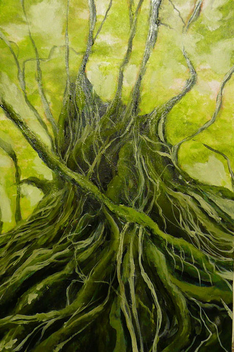 仕事もない。教室もない。 どこかで講演の依頼もボランティアもない。 このモチーフ。 気持ち悪いと思われる方もいるかもしれないですが、自分にとっては、生命力や、樹木の頭脳を感じたモチーフでした。どう思われても自分の描きたいモノを優先し、素直に、素直に描いてきた作品です。これも完成にはまだ少しかかります。 それにしても、とにかく、この週末は、自分の為だけに、自分の作品の為だけに使えてる時間となりました。 ふと、描きながら思ったのは、毎週、毎日、こんなに時間があったら、どんだけ絵がかけるの!?と。 もちろん、体力の問題もありますが・・・。今日はちょうど15時間。そろそろ寝ます。 明日も休みだから、今日はウィスキーを酔うまで!!!!!!なんて思ってましたが、こんな夜に限って、酒の事を忘れて没頭してしまうんですね。。。平日だと深酒してしまうのはなんでかね。。。。