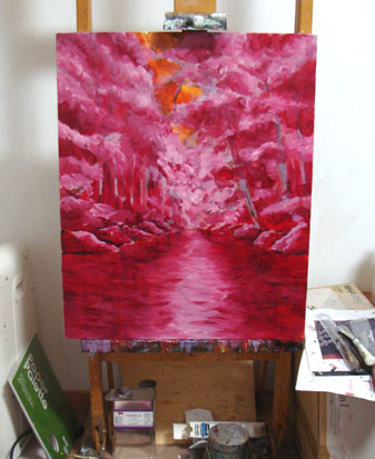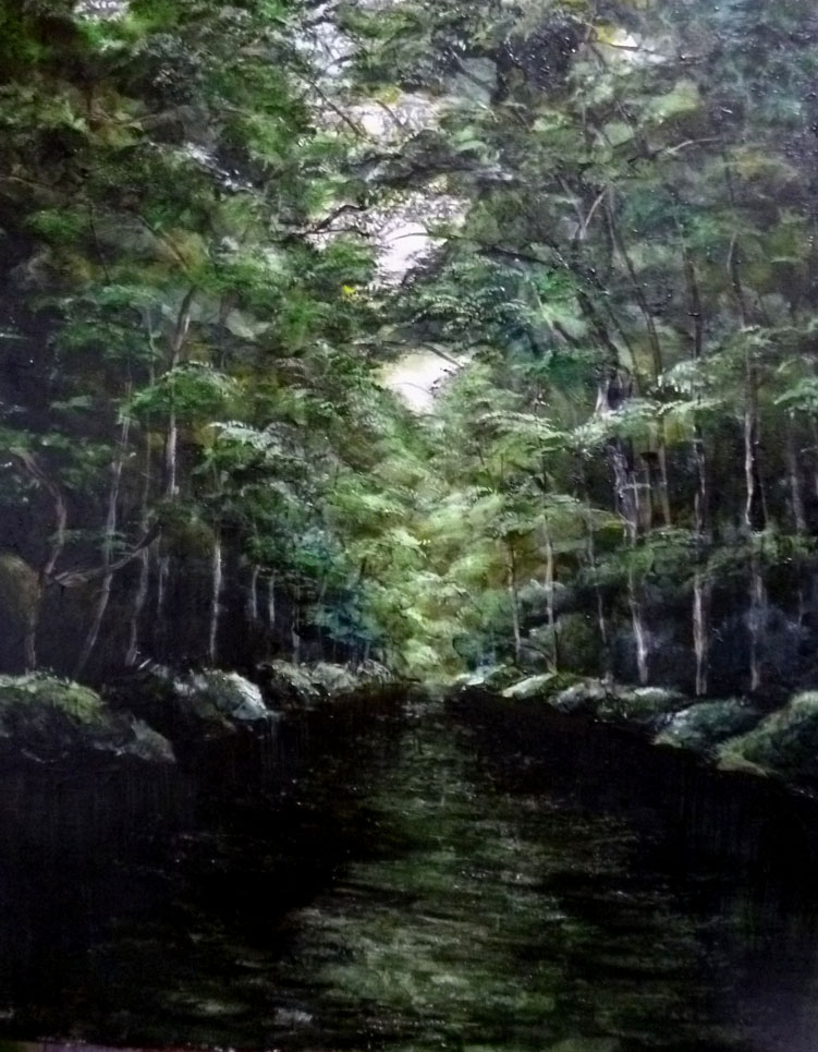 今日は、先日の川の習作より、本作に入った作品をだいぶ進めました。今日もなんだか、くたびれました。というよりも、とても充実していました。
