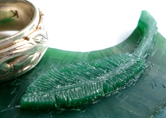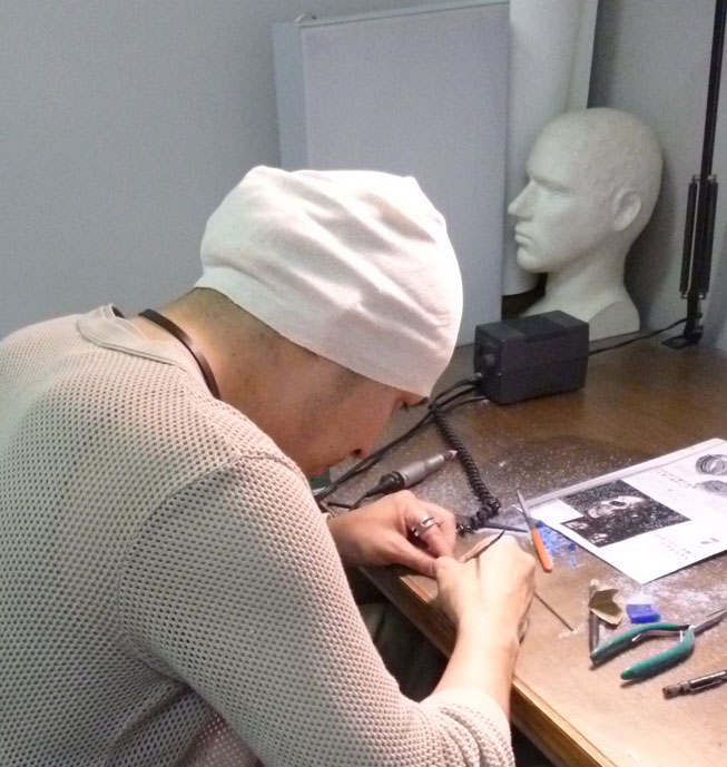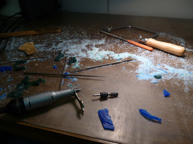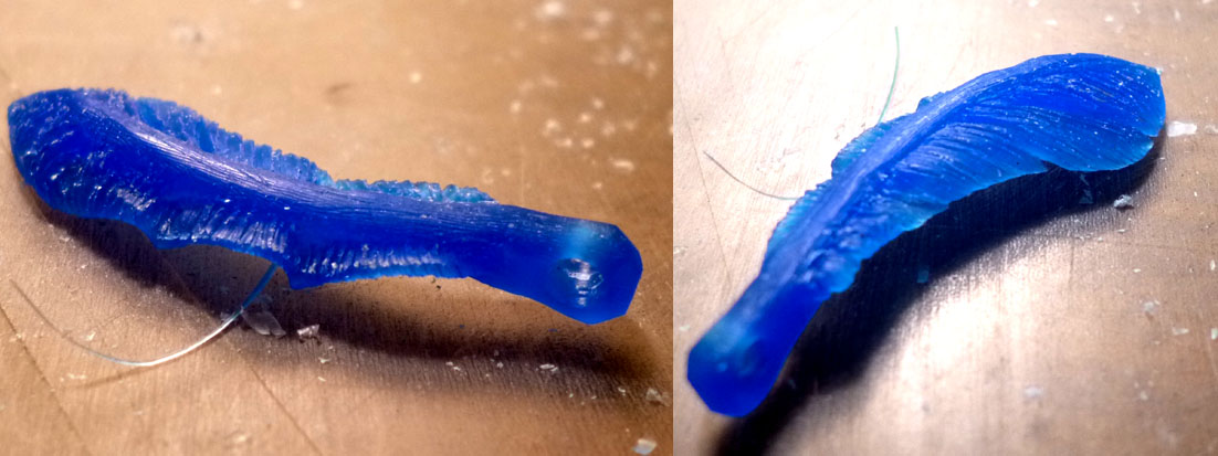 ちょっとでかいな、ということで、没。 これは、工場から分けてもらってきたワックスを使って、リューターとやすりを使って作ったものです。 明日はもう一回り小さく、形にもう少し工夫をしたものを作り直します。