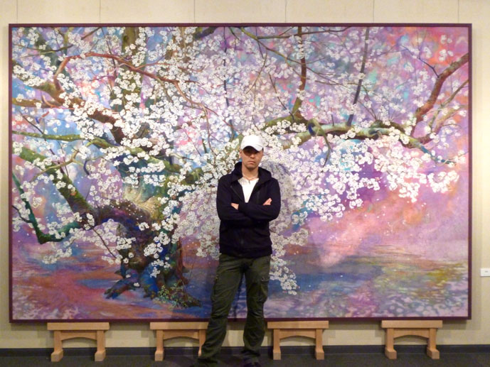 その目的は、KAzの師匠、驢庵(ロアン)こと、石川義和先生の個展が開催されたからでありました。今回のメインとも言える櫻の作品をご紹介いたします。 石川義和日本画作品展として、 練馬区立美術館区民ギャラリー 2011年5月3日(火)~8日(日) で行われています。 西武池袋線の中村橋という駅で徒歩5分くらいのところです。 この作品は、是非とも、ご覧になった方がいいと思います。 一人の作家の持てる力の偉大さを感じる事ができ、 命の力や躍動感をもらえる作品展だと思います。 ひとりでも多くの方々にご覧いただける事を祈ります。 この作品、どれだけ大きいの?に応えて・・・ この作品展は、 青森展:青森県立美術館コミュニティーギャラリー 2011年8月2日(火)~7日(日)でも行われます!!!