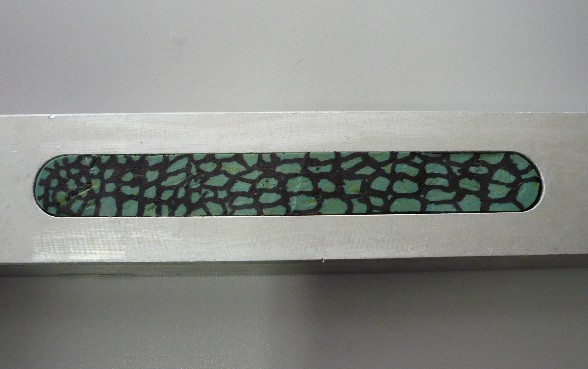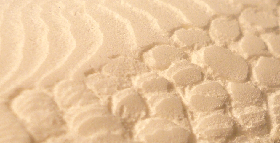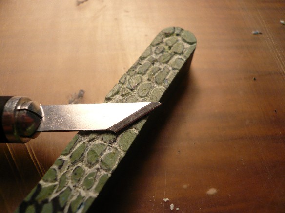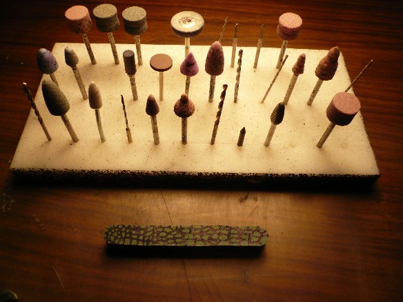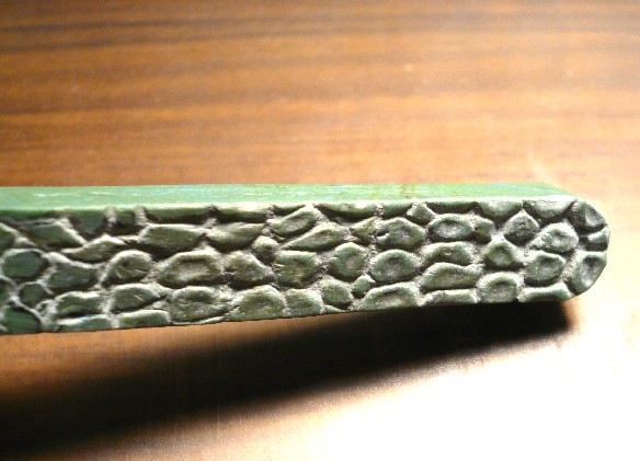 ①今日は型のイメージと いうか、原型を作ってみました。 A剤とB剤を混ぜると固まる粘土。 アルミの型に入れて、開始です。 ②1時間くらいで固まるんです。 上にべちょっとはみ出たところを スライスして、水平を出します。 その完成に合わせたパターンの絵を 簡単に準備しておきます。 ④パターンを転写しようと思ったのですが いいアイデアが浮かばなかったので、 適当に見ながら手描きで写しました。 (こういうところ、いい加減です 笑) でてきたのがこちら。 型どるものにオイルを塗っとかないと ぴたっとくっついて取れなくなるそう。 今回はキチンと塗ってもらったので 大丈夫でした☆ いよいよ作業開始です。 まずはリューターで粗削り。 結構硬いので、ガイドを作っちゃう イメージですね。 うろこのひとつひとつの角ばったところ等を デザインカッターで整えていきます。 この頃になると、かちんこちんで 削るのが大変になってきます。 それぞれにリューターで凹をつけて、 全体的に磨いて、つやを出したら 『プレスで出せない イメージ原型の出来上がり!』(笑) です。 デザイン図面では、全ての箇所を断面図で説明するので、こういう場合は、そのものを作っちゃうのが一番なんですねぇ~。 ただ、ちょっと、気持ち悪いかもしれませんね。まぁー、これは、あくまでイメージするためのサンプルなので、これで決まるのであれば、また、もう少しキチンと、計画を立てて(固まる段階に応じての作業を考慮して)また作ります☆ って、この作業工程って載っけていいんか!? まぁ、いいか。笑