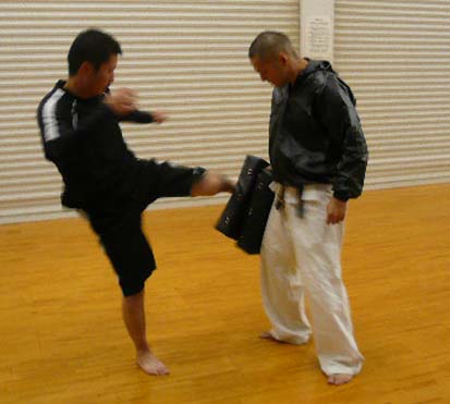 皆さん、楽しい雰囲気で運動していただけました。 前回から、ずいぶん時間が空いてしまいましたが、 本当に皆さん上手になってきています。 何よりも、この継続力が本当に素晴らしい事だなと思います。 Tさんはさすが総合系、何をやらせても綺麗に動いてくれます。 こちらから教えることはありませんね。素晴らしい動きです。 もっとも進化している男の一人、Mさんです。 この人のいいところは継続です。本当にまじめで、一つの事を コツコツ達成していきます。今日はひさびさでしたが、 蹴りの切れが本当に素敵でした。今見ると、体の軸が後方に ずれているので、軸をブラさないで、体重を蹴りに乗せましょうね♪ ここで全員ではありませんが、ちょこっとだけ 参加者をご紹介したいと思います。(勝手に、、笑) アナコンダー『T』と呼ばれるこの方は 一旦、寝たら1分持たないのではないかと 言われるほど、恐ろしい寝業師です。 あー怖い怖い。 境の『O』と言えばこの子。 暴れて暴れてどうしようもない子でしたが、 その素質を見て、KAzがスカウトしてきました。 んー目つき以外は、だいぶ大人になりました!(笑) 循環線の『M』さん。 見た目通りの方です。 おうちにある日本刀は模造かどうか、いまだに不明です。 昔はいろんな道具が車に積まれており、 夜な夜な走る某◎族を撃退していたという、 怖いんだか、優しいんだかの紙一重の方でございます。 まぁ、僕は怖いと思いますが。。。 今回から新しく参加してくれた TKM君です。かなり筋がよく、言われた事を しっかりやれば相当筋がいいのではと KAzが期待を寄せる新人さんです。 KAzでーす。 12分通してのスパーリングの直後なので、相当息が上がってます。 今日は、たくさん、蹴らせたので、体のあちこちが痛いです。笑 みなさまお疲れ様でした☆ またしましょー!