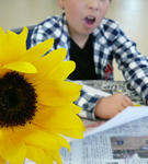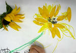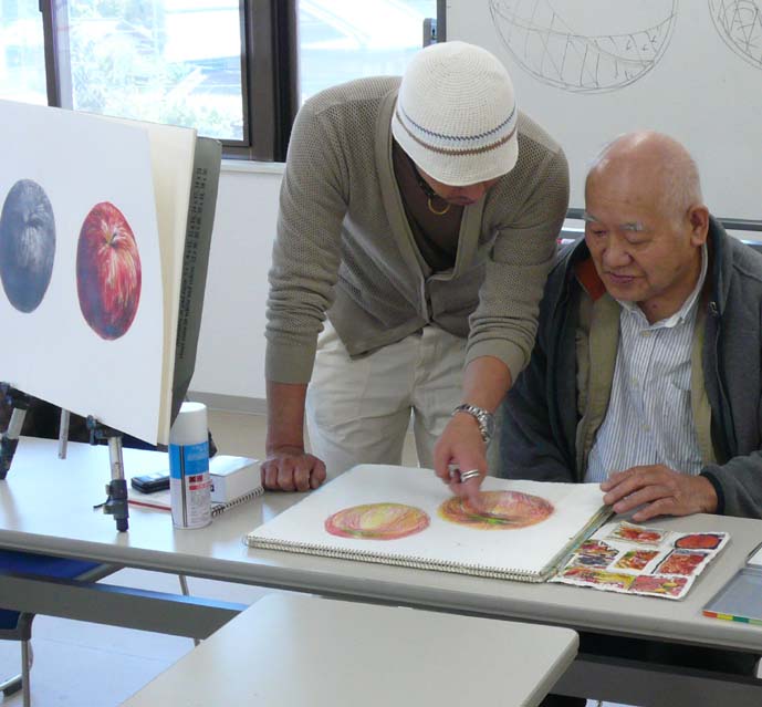 最初に描いてもらったのはひまわり。 なかなか素敵ですね。 Mさんも早速かいてもらいました。 元気良く、黄色を塗っていました。 同じように陰影をつけていきます。 トーンを合わせて輪郭も少しはっきりさせました。 続いて決めた大きさの花びらを描いていきます。 素敵な色合いです。 安定感のある形取りですね。 二色目に突入しました。発色のいい色合いですね。 花びらも付け足します。 微妙な色を混ぜながら進めていきます。 え?こんなに濃いんですか? と言いながらも、とてもキレイにかけています。 インディゴです。 外から内、そして、内から外へ。 コントラストをつけて、輪郭を出して・・・ 花の繊維、そして、陰影、形を整理して完成です! お疲れさまでしたー。 意外な一面が見られる作品です。 いつもは感じられないような部分が作品に良く現れています。 もしかすると、ホントに悩むと一人で考え込んでしまうタイプ? この作品そのものには、そういう影はないのですが。。。☆ おつかれさまでしたー! | カレンダー
