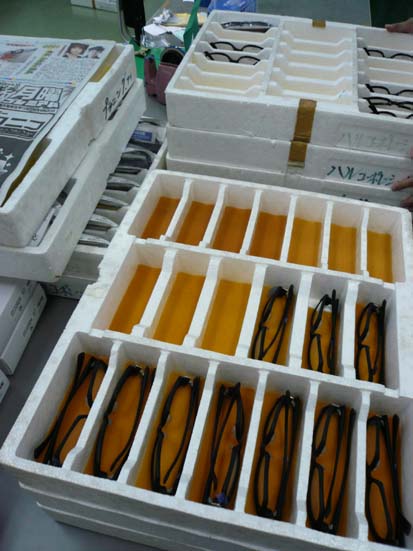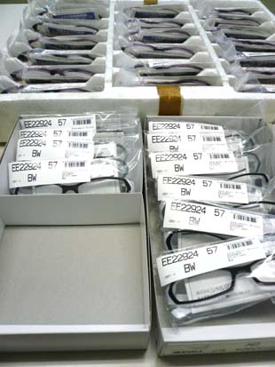 今晩は検品です。。。 空港の税関通って、今晩到着したメガネ達です。 解禁するために、今晩はメガネの検品をします。 といっても、すべてを検品しないと、安心できないという 『疑い』からです。。。^-^; こういう気持ちもどうかと思いますが.... KAzが行くころには、すでに傷の箇所やずれなど、 可能性があるところの打ち合わせが始まっていました。 12時には、『キーんコーンカーンコーン』と夜食の鐘が鳴っていました。 レーザー刻印の見え、ゴミの有無、 天然石のずれ、隙間などのチェックをしています。 これらはみーんな、すでに一度検品され、 納品されようとしている商品を ボスとKAzでもう一回検品している状態です。 メガネ・・・・ メガネ・・・・ メガネ・・・・。 メガネばかりですね。笑 まぁ、メガネ屋なのでしょうがないのですが。。。 それにしても、メガネでないとしても、 お店で売られている商品に もし、これだけの人の手がかけられていたり、 不良や不具合が無いようにっていう願いや、 喜んでもらいたい、っていう気持ちが込められていたり するのなら、不思議だな、って思います。 店に並んでいるのは、出来あがって、そんな過程をちらりとも見せずに 完成だけ、一番いいところだけを見せるわけですよね。 そこしか見えない。 でも、そこにはいろんな思いや願いがあったりすると思うと、 商品を見る気持ちって変わってくる気がします。 今日の夜、EROSのメガネ、一枚一枚に気持ちを吹き込んでいます。 そうそう、昨日の夜、680円で売ってるドン・○ほーテの デニムの作業員がテレビで取材されていました。 『あたしが作ったデニムを誰かがはいてると思うと嬉しい』と。 国籍、価格や販路を超えて、商品に何かが込められているというのは 本当に素敵だな、って今更ながら思います。 いやいやいや、話がずれましたが、 それは、それ。 明日は、というか、今日は完璧な商品を絶対に納品してもらいます! みんな、待っててね!