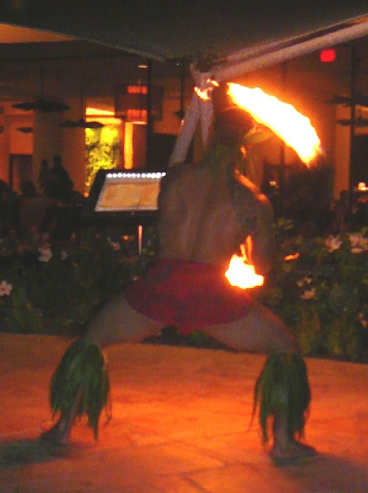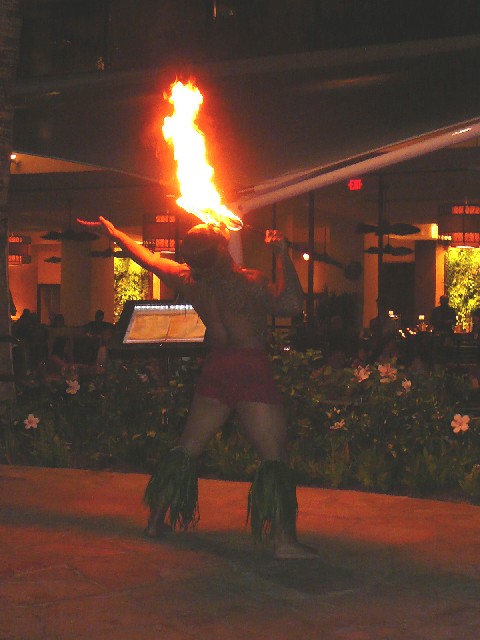 全身Tatooだらけで、目つきが異様にぎらついているお兄さん。 毎回通りかかるたびに自分と目が合い、 こっち見てちょっと笑顔で軽くうなずいてくるから、 KAzも同様にちょっと笑顔で軽くうなずいてリアクション。 んー、この人は自分に対して好意をもってくれているけど、 どこにそういう共通点を感じているんだろう・・・、と不思議でした。 いろいろありましたが、最後の日の夜、 一度くらいはホテルで食事をしようかなと思い、 ショーを見ながらビールを飲んでいたらなんと目の前で、 火を回すわ、口の中に火を入れるわ、体に火をつけるわの、 最高に恐ろしい事をしていました。 このショーが終わった時に、彼の顔をみたら・・・ あーーー!このショーの人だったのね! そう、ぎらついた目つきの全身Tatooの兄さんでした。 『なんだなんだー危ない奴かと思ったよ』といったら、 『おれは十分に危ないぜ』と言ってました。笑 今日からおれたちブラザーだな、ということで 写真撮影してみましたー。 まぁ、どっちもどっちですが。。。アハハ 今回の旅でできた大切な友人です! さよならーハワイ!