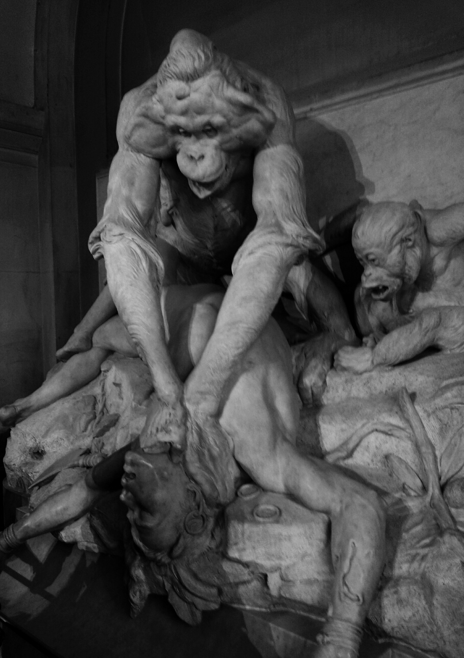 骨の博物館です。古生物比較解剖学博物館。 ま、日本語で書いても難しいのですがフランス語よりは、なんとなくイメージが湧きます。 以前から気になっていたこの博物館、とうとう行って参りました。 マンハッタンにも同じような自然史博物館はありますが、 もっと良い意味でアナログなイメージであり、 専門学的な要素が強い印象がありました。 ゲートを入る前にチケットを買うのですが、最初のお出迎えがこの彫刻。 え?!オランウータンって人を襲うんですか?これまた、彫刻のディテールがエグイ。 人は顔の皮を剥がされて、それを見ている子供のオランウータンはやれやれ!的な感じ。 それぞれの事情はあるのかもしれませんが、相当怖いです。(笑) ゲートを入ってすぐに登場するのは、このキン肉マン。 そして、真っ白な骨だらけの空間。もう圧巻です。 骨の写真を、とも思うのですが、どの写真を載せたらいいのかわからないので、 目立ったモノを数点。 ここまで大きな骨になると、なんの動物か変わりません。 正体はこれ。クジラって大きいんだなぁ。 そして、世にも奇妙な頭蓋骨はこれ。 実際にこういう風に生まれてしまった動物がいるんでしょうね。 だって、このホルマリン漬け。 これ本物だよなぁ~。 体がいう事が効かない!とか、そういう現象が起きそうな体。 農薬が原因でこうなる事も あるようですね。 こちら、脳みその一覧。 どの脳みそにしようかなぁ~☆ 脳を食べてしまう一部の人種の方々にとっては『脳みそバー』みたいに映るのかしら。 オソロシ。 こちらも、ご丁寧に脳みそのご説明を頂けるホルマリン漬け。 外に出ると、爽やかな公園には、おじいさんの石像。 何かと特徴のあるこの空間、パリにお住まいの方は是非。 ちなみに、KAzは、次、スケッチブックを持って 一日中来るつもりでーす☆